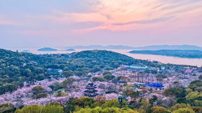鼋头渚樱花正呈现私有的浮松盛景,刻下园内中樱刚巧诗意落樱期,枝端似锦轻垂、粉瓣随风漫舞,漫天樱花雨唯好意思动东谈主,尽显中樱纷落的浮松韵味。