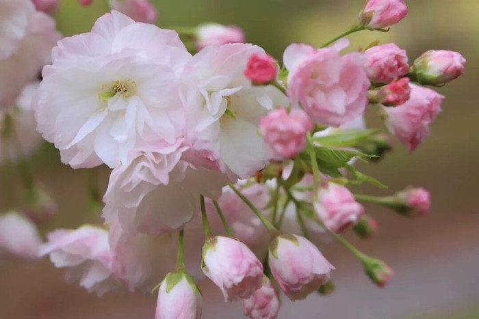 本年全新打造的晚樱园惊喜上线,多款名贵晚樱已秀美怒放:绮丽登场的名贵红、名贵荷瓣,簇新文静的绿色樱花郁金,温婉动东谈主的白粉色手弱女,明艳夺缠绵艳粉色红绯衣,各色晚樱争妍斗奇,绘就别样春日画卷。
