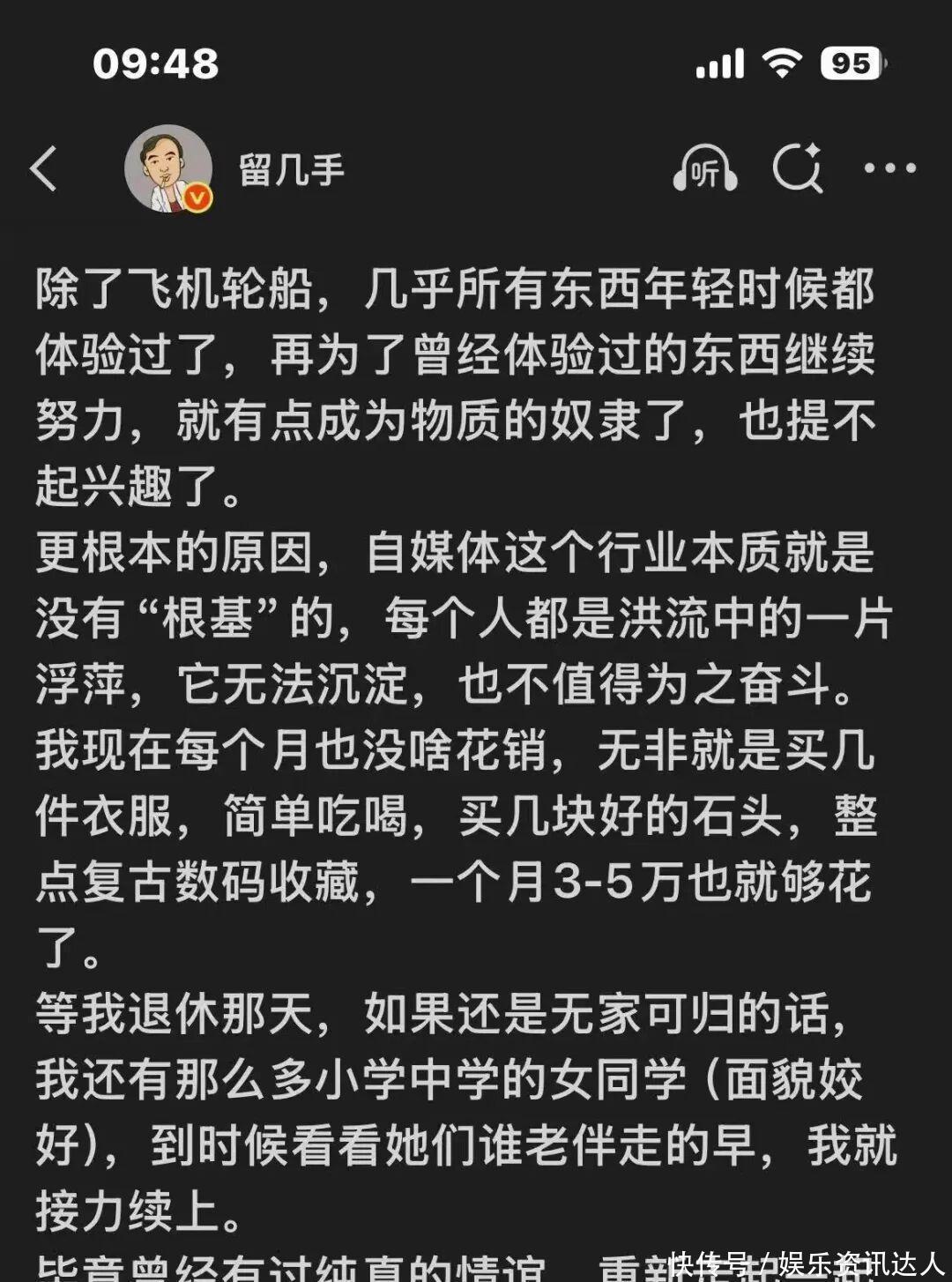 离都离了,我方一天天在相聚上yy,说仳离后又行了,须臾念念“玩女网红”,须臾又是老了以后要找漂亮保姆。