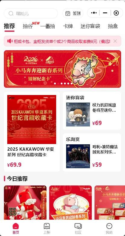 公司的主要业务是潮玩盲盒耗尽小步伐,提供新品发售、在线抽选、二手交换等劳动,主要在微信小步伐、天猫旗舰店直销商品,在线下零卖店、卡牌专营店等渠谈经销。