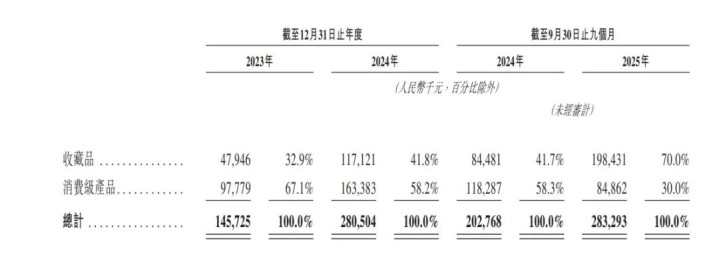 Suplay旗下储藏品(卡牌)的收入占比数据,能很好地印证这少量:从2023年的32.9%,大幅提高到2025年前9个月的70.0%后,如今卡牌已是公司营收的中枢复旧。