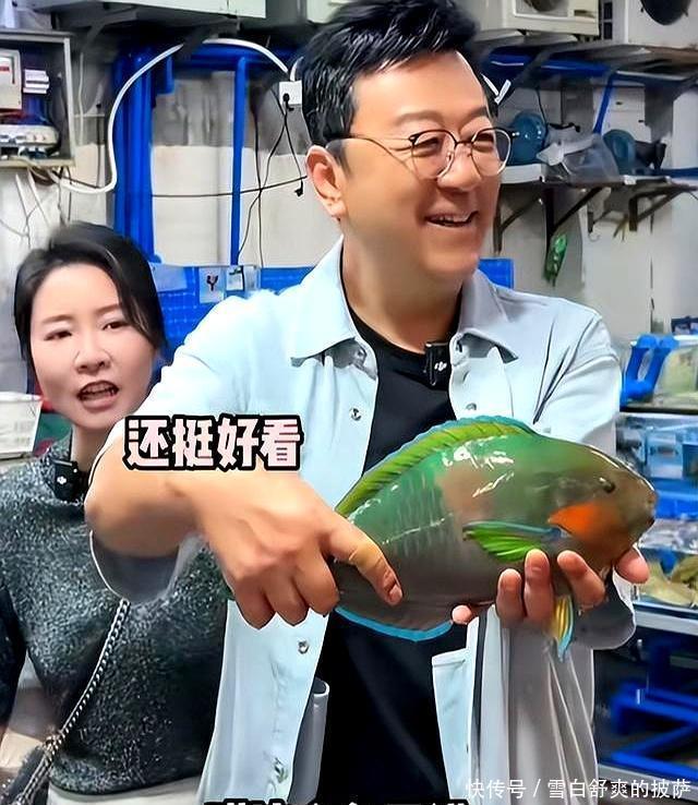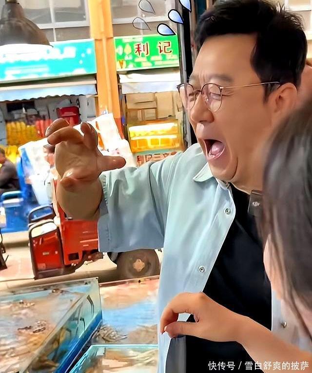 视频里郭涛一副大男孩模式,逛到海鲜摊,手一伸就被皮皮虾给扎了,痛得直抽气。